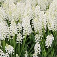 Белоснежные соцветия очаровательного мускари Ботриойдес Альбум напоминают пушистые белоснежные облака. Глядя на них, чувствуешь, как появляется ощущение легкости и невесомости, беззаботности и умиротворения. Издалека клумба с цветущими мускари подобна ковру, на котором разместились десятки заснеженных гроздей винограда. Но стоит подойти поближе – и это уже не заснеженный виноград, а десятки маленьких цветочков-колокольчиков.